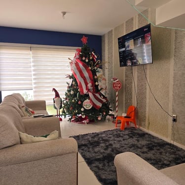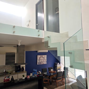 Equipada con persianas, tapiz en muros, barandal de cristal templado.