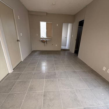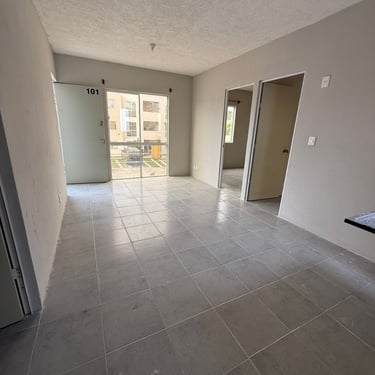 Recibidor, cocina integral con isla (barra de granito, campana y parrilla), sala-comedor, 2 recámaras (una con minisplit y clóset) recámara principal con vestidor, minisplit y baño, un baño y medio, espacio para family room, estacionamiento para 2 vehículos.